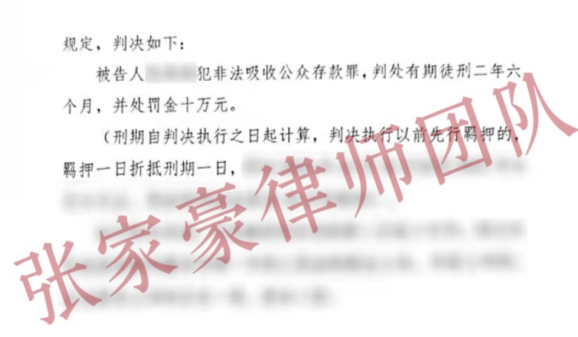 近期,张家豪律师团队代理了一起鼎益丰某地分公司负责人的非法吸收公众存款案。在涉案金额高达3000余万元、属于“数额巨大”且情节严重的情况下,我们通过精准的辩护策略,成功为当事人争取到了有期徒刑两年半的轻判结果。