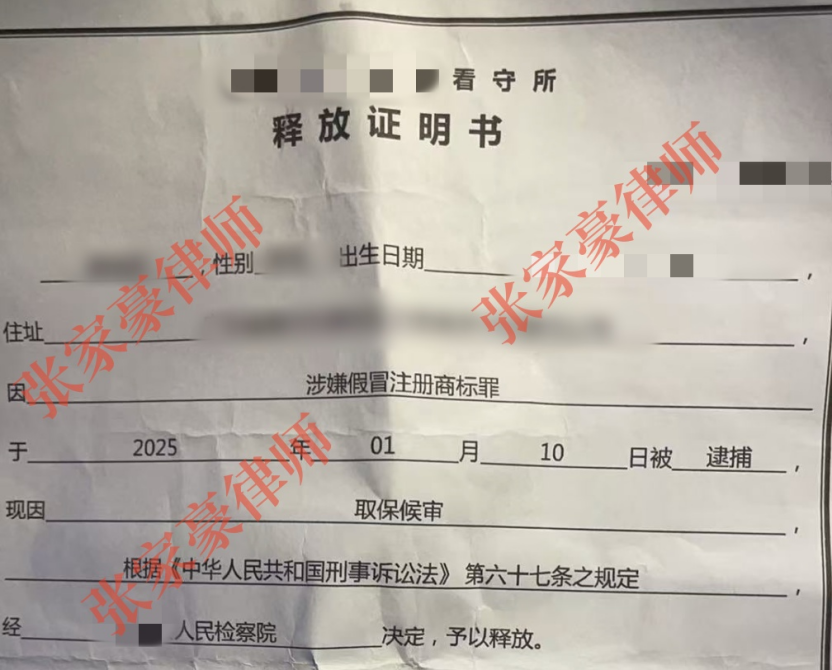 案件简介:涉案金额近200万元的假冒注册商标罪一案,经过张家豪律师的努力,当事人在被关押六个月后取保候审、重获自由。