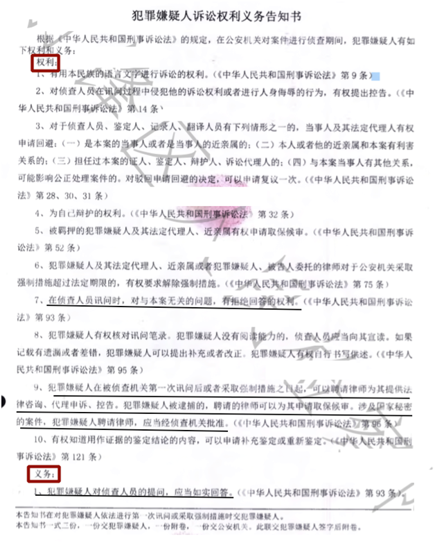 5、如果你希望跟你对律师谈话,你可以在任何时间停止回答问题,并且你可以让律师一直伴随你询问的全过程。”